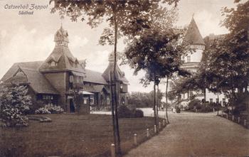 data dodania fotografii 2012-02-01 Łazienki Południowe oraz przyległa do nich plaża, zdjęcie z ok. 1924 r. (KC, Trinks & Co.) | Dom Zdrojowy