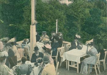 data dodania fotografii 2011-11-18 Ogród i taras kawiarniany przy Willi Stolzenfels, zdjęcie z ok. 1913 r. (KC) | Willa Stolzenfels