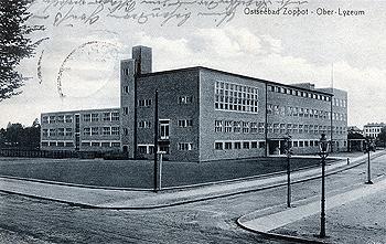 data dodania fotografii 2009-09-20 Budynek Wyższego Liceum oraz nowo wytyczona ul. Betovena (obecnie Książąt Pomorskich), zdjęcie z 1934 r. (JT) | Dworek Braci Wetzel