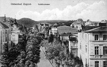 data dodania fotografii 2009-05-25 Widok na ul. Pomorską - południową część obecnej al. Niepodległości. Zdjęcie zrobione ze skrzyżowania z ul. Podgórną oraz ul. Morską, w oddali widoczny budynek Karczmy Sopockiej, zdjęcie z 1910 r. (MM, Schaar & Dathe) |