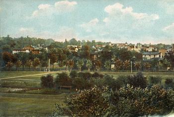 data dodania fotografii 2009-05-10 Widok na Dolinę Owczą ze Wzgórza Poziomkowego, przed jej zabudową pod koniec XIX w., zdjęcie z ok. 1895 r. (MM, Stengel & Co.) | ul. Wybickiego