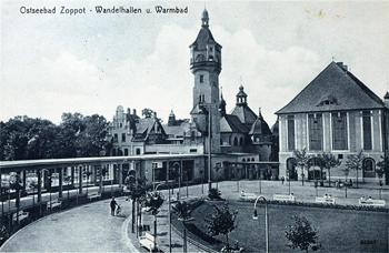 data dodania fotografii 2009-03-29 Budynek latarni morskiej, ciepłych kąpieli od strony mola, zdjęcie z ok. 1904 r. (TPS) | Zakład Balneologiczny