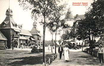 data dodania fotografii 2006-01-01 Łazienki Południowe widoczne od strony promenady, zdjęcie z ok. 1910 r. (KC, Clara Bernthal) | Łazienki Południowe