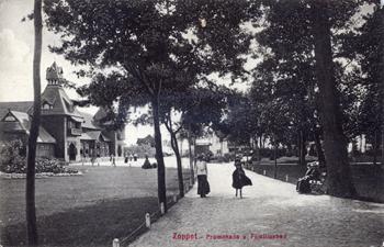 data dodania fotografii 2005-12-19 Promenada w Parku Północnym i galerią sztuki znajdująca się nieopodal plaży, zdjęcie ok. 1920 r. (KC, C. Ziemssens) | Al. Mamuszki