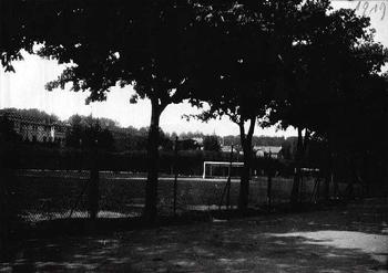 data dodania fotografii 2009-09-21 Plac Mancowy przeprojektowany na boisko sportowe, widziany od strony Alejek Północnych, w tle widoczna willa przy obecnej ul. Powstańców Warszawy 65 oraz 75, zdjęcie z 1919 r. (BMS PAH) |