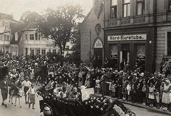 data dodania fotografii 2017-04-20 Kościół oraz fragment Hotelu Północnego przy dawnej ul. Północnej, zdjęcie z obchodów korso kwiatowego w 1932 r. (UM) | Hotel Metropol
