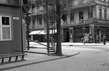 data dodania fotografii 2016-09-13 Apteka Pod Orłem przy obecnej ul. Bohaterów Monte Cassino w marcu 1945 r. (TPS) | Hotel Cafe Haueisen