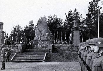 data dodania fotografii 2015-07-04 Pomnik Żołnierzy (pozbawiony orła) w czasie uroczystości wojskowych w okresie drugiej wojny światowej, zdjęcie z ok 1944 r. (GK) |