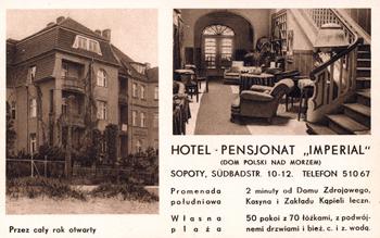 data dodania fotografii 2011-02-26 Pensjonat Hotel Imperial, dawniej Pensjonat Dom nad Morzem, widoczny z promenady południowej, zdjęcie z ok. 1940 r. | Pensjonat Dom Odpoczynku