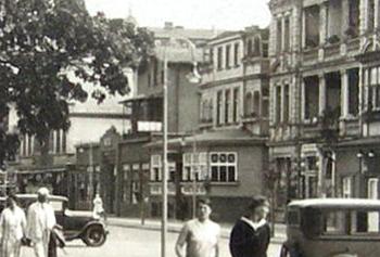 data dodania fotografii 2005-12-09 Widok na nieistniejący Trzeci Dom kuracyjny i Kasyno przy dawnej ul. Północnej. Z lewej strony widoczna nieistniejąca przedwojenna zabudowa ul. Monte Cassino i Hotel Werminghoff, zdjęcie z ok. 1940 r. (DS, Heinrich Hoffmann) |