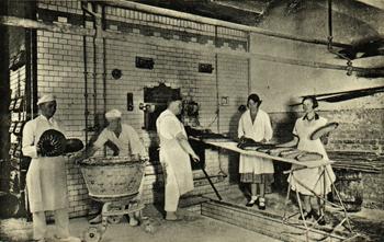 data dodania fotografii 2013-07-31 Wnętrze piekarni rodziny Bromberg. Na zdjęciu widoczni pracownicy piekarni oraz parowy piec piekarniczy, zdjęcie z ok. 1930 r. (ZO, TPS) | Poczta