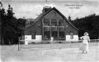data dodania fotografii 2009-01-24 Korty tenisowe przy Sopockim Klubie Tenisowym, widok w kierunku wschodnim, zdjęcie z ok. 1920 r. (TPS) | Klub Tenisowy