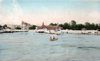 data dodania fotografii 2007-01-10 Łazienki Południowe widziane od strony plaży i zatoki, zdjęcie ok. 1911 r. (KC, Urania Gr. Inst.) | Łazienki Południowe