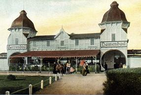 data dodania fotografii 2006-01-01 Łazienki Południowe widoczne od strony promenady, zdjęcie z ok. 1910 r. (KC, Clara Bernthal) | Łazienki Południowe